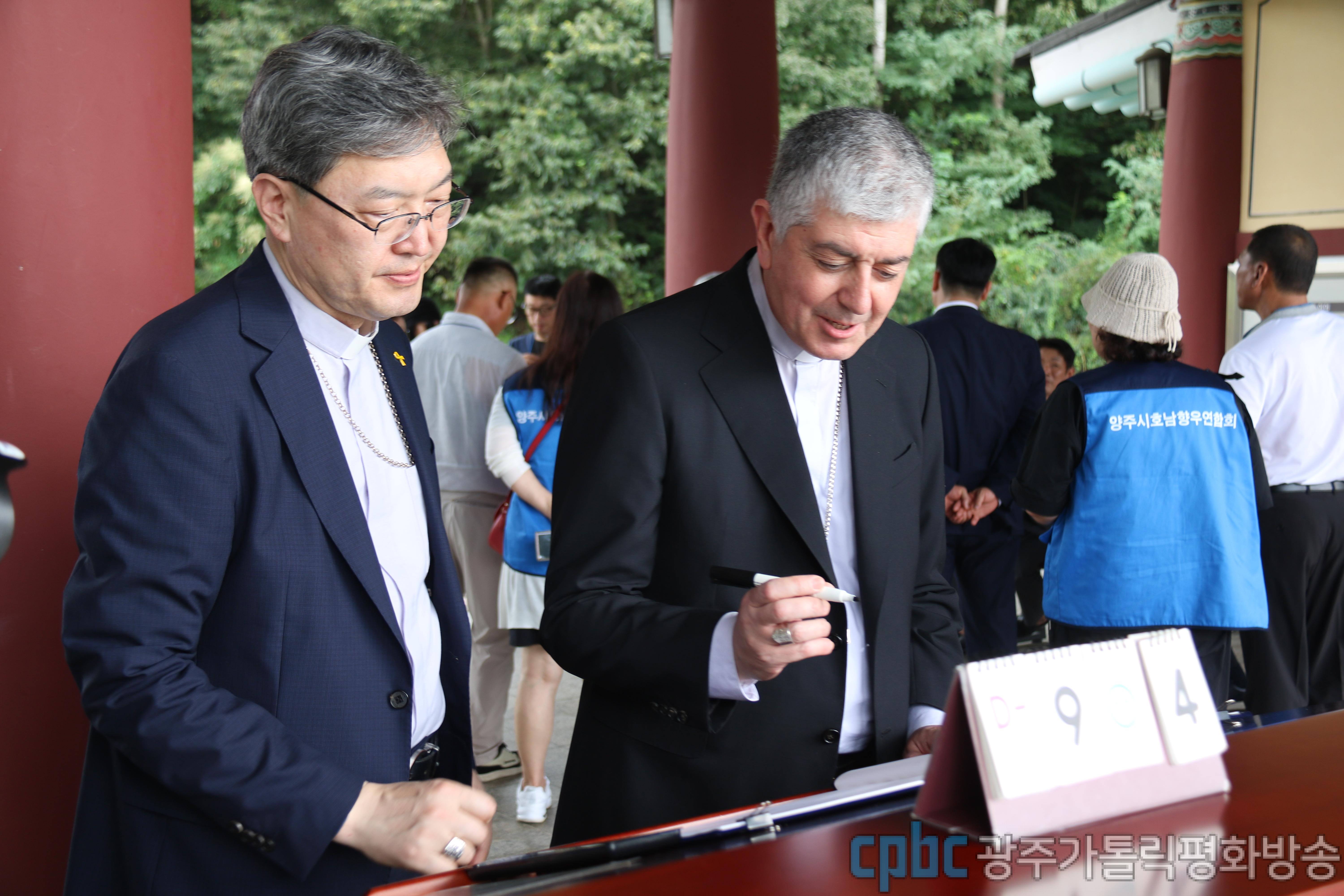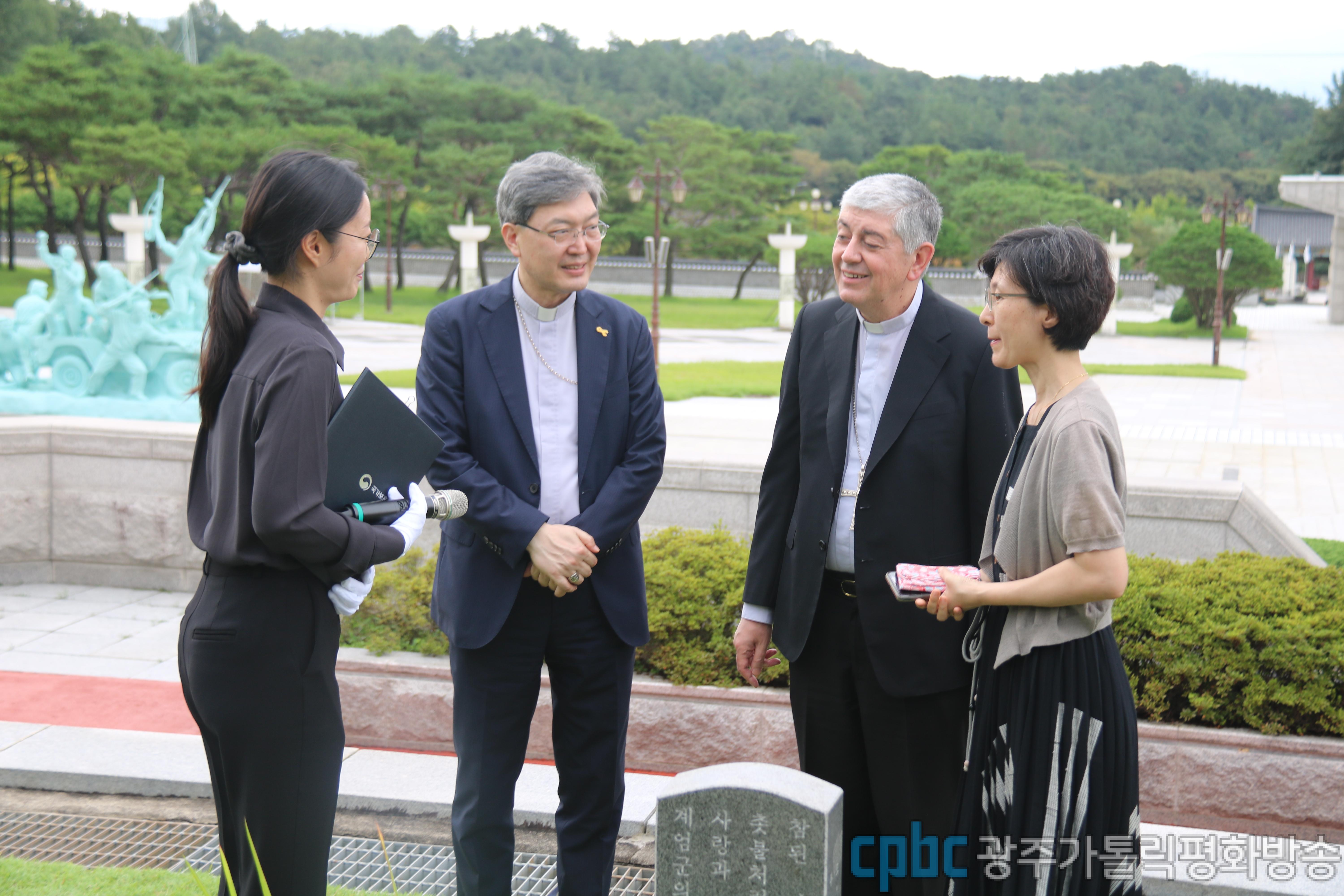 이후 조반니 가스파리 대주교는 국립 5·18민주묘지를 찾아 추모관에서 5·18민주화운동 안내 영상을 시청한 뒤 옥 대주교와 함께 희생자들을 기리며 참배했습니다.