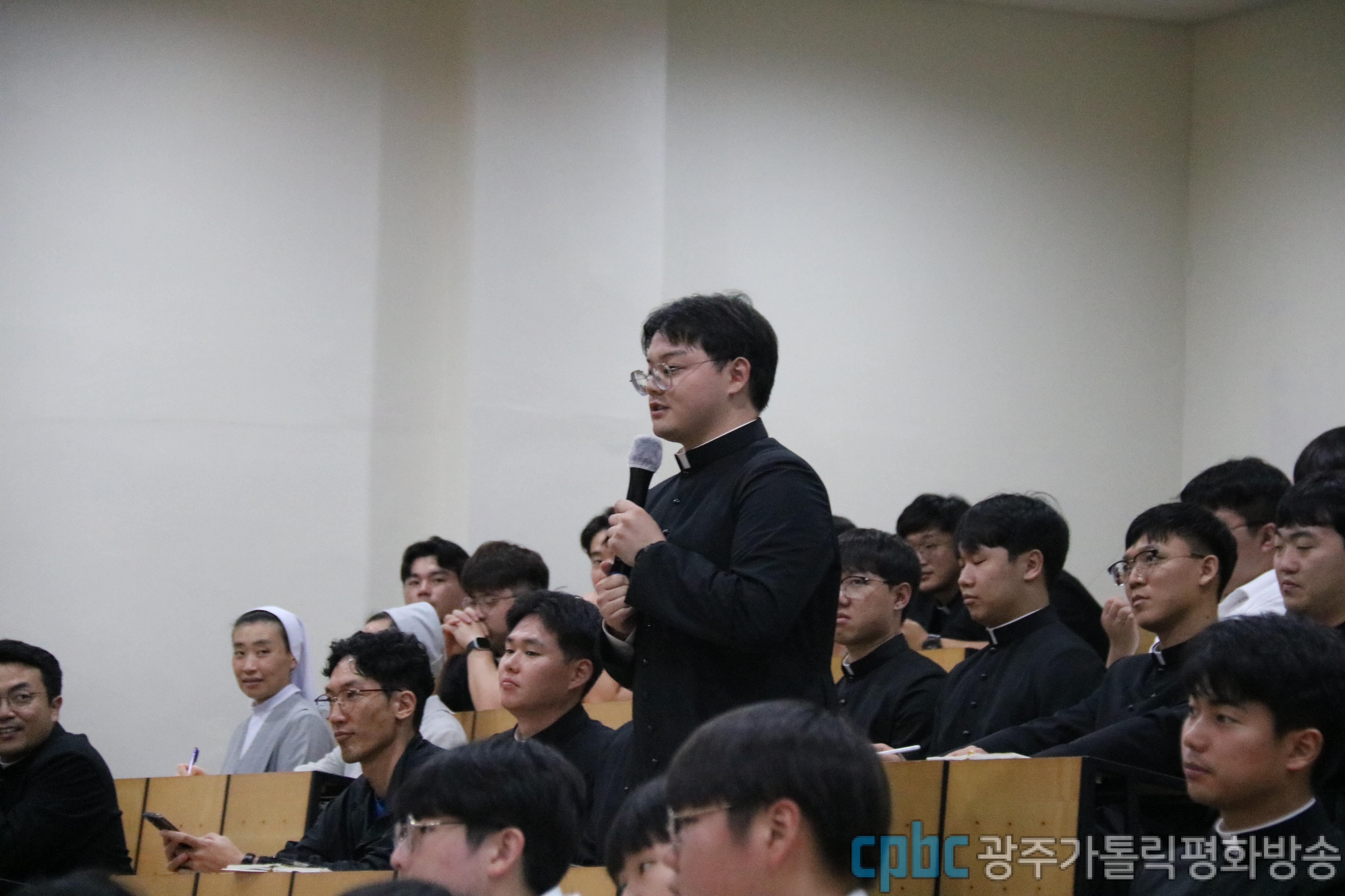 광주가톨릭대학교 4학년인 허민(스테파노)신학생은 질의응답 시간을 통해 "신학생 때 인상 깊게 읽었던 문학 작품을 소개해달라"고 요청하자 가스파리 대주교는 "단테의 '신곡'도 있고 최근으로 보면 노벨상을 받은 한강 작가의 작품을 잘 들여다보면 그 뿌리가 그리스도 정신과도 맞닿아 있다"고 설명했습니다.
