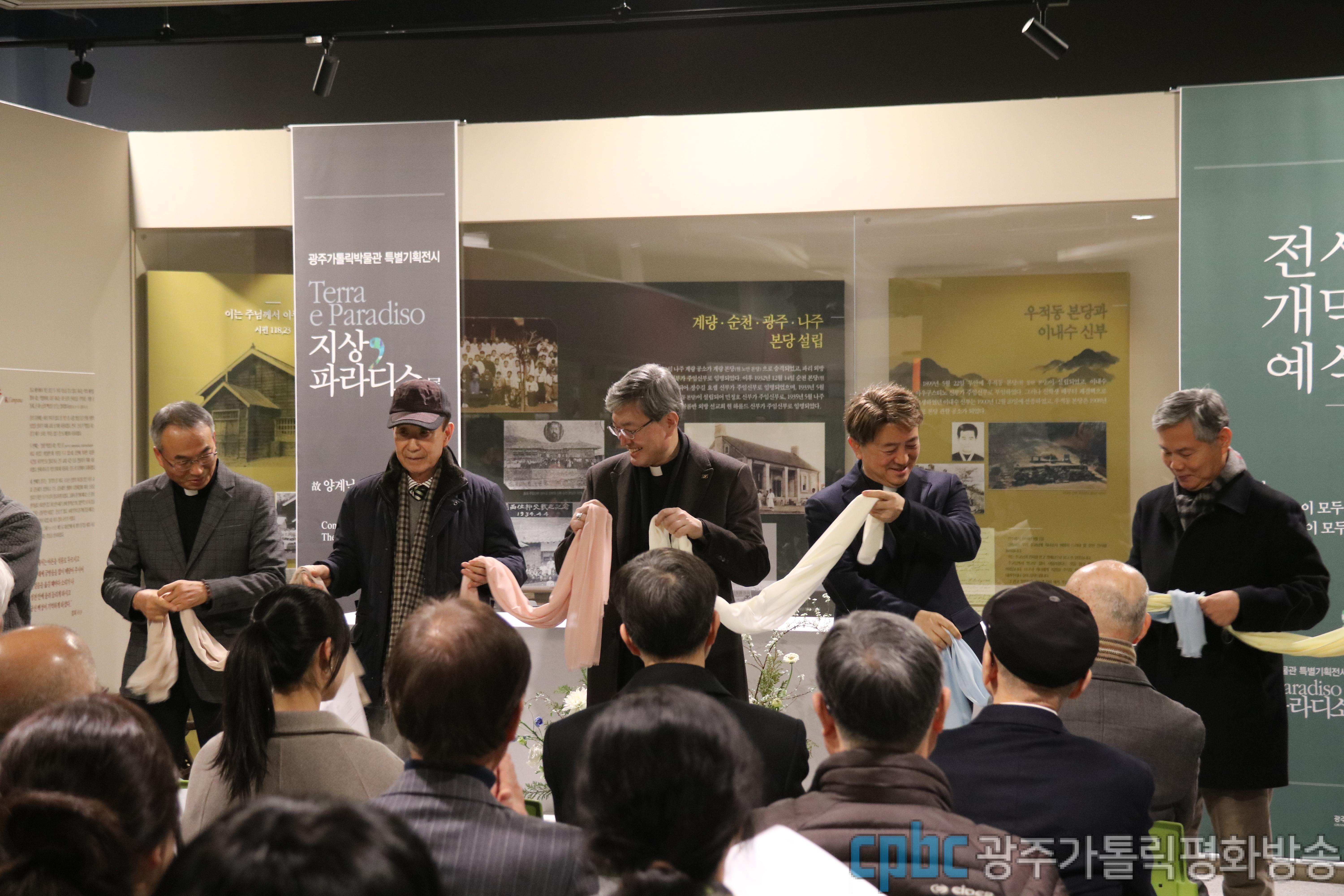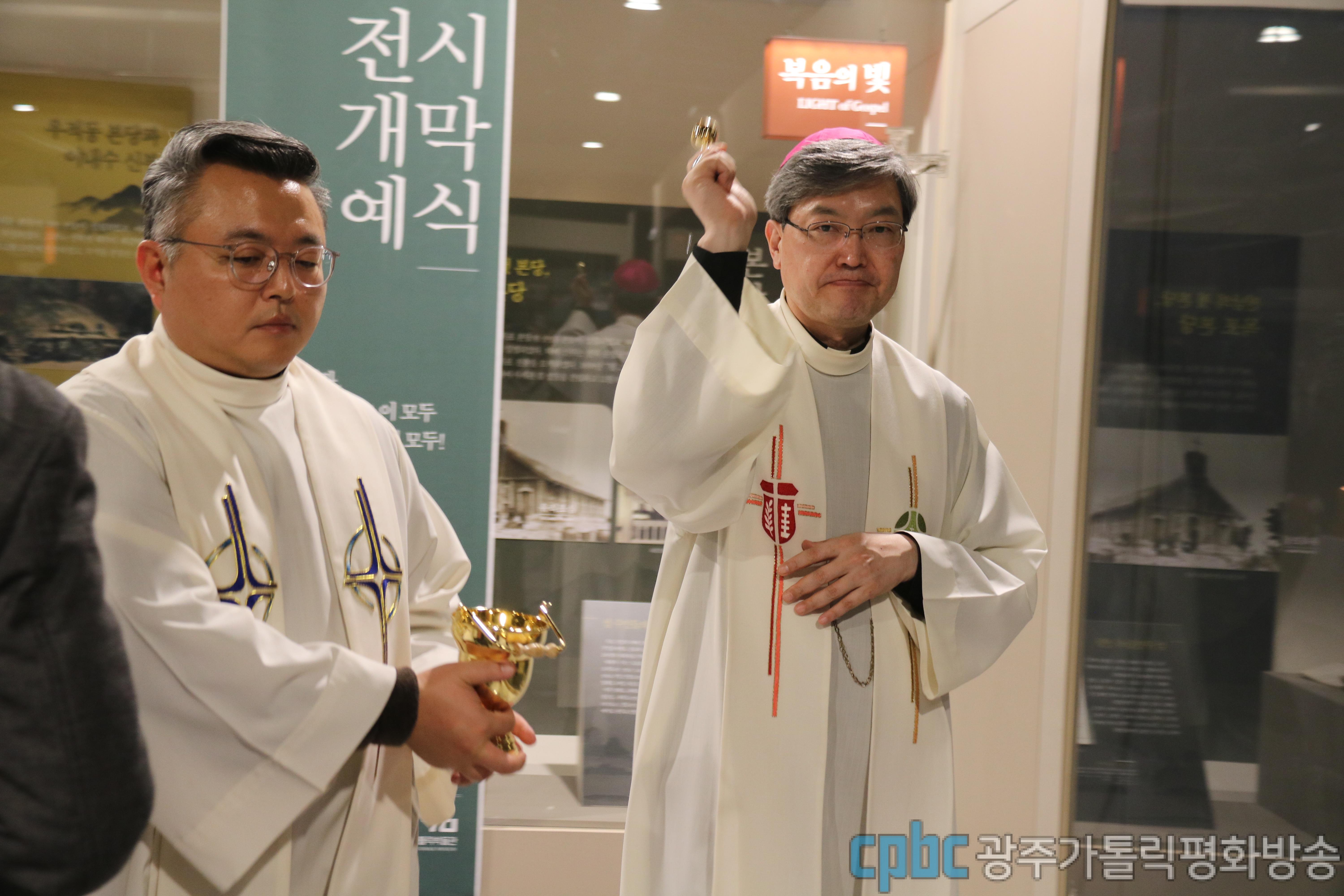 이날 개막식은 옥현진 대주교의 주례로 축복 예식이 집전됐으며 성수 뿌림을 시작으로 전시 경과 보고와 축사, 기증증서 수여, 감사 인사, 축하 노래 순으로 진행됐습니다.