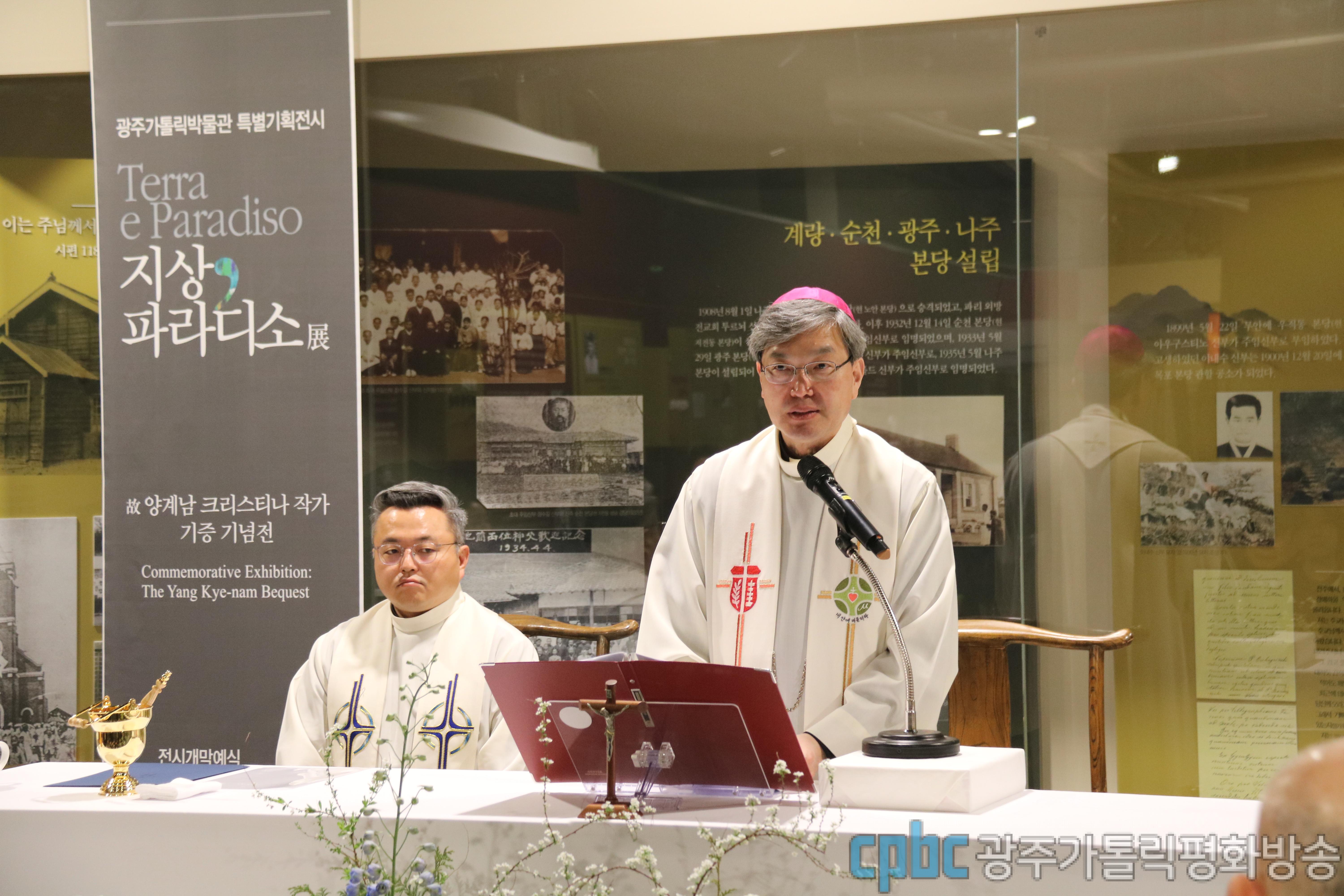 개막식에는 광주대교구 교구장인 옥현진 대주교를 비롯해 교구 사제와 신자들, 고인의 본당이었던 산수동성당 주임신부, 양계남 작가의 유족, 조선대 예술대학과 전남대 미술대학 관계자 등 100여명이 참석했습니다.